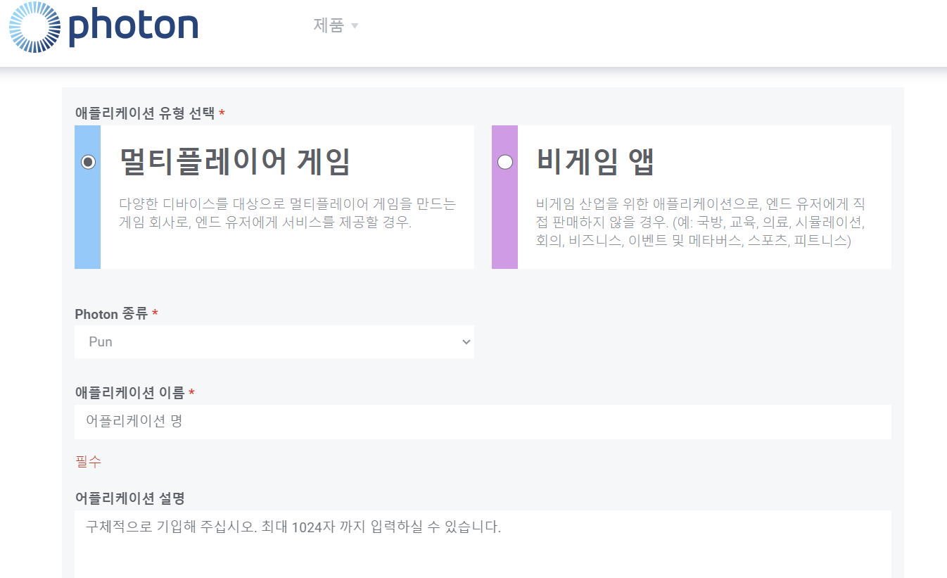 2. Photon Pun으로 설정, 이름, 설명 기
