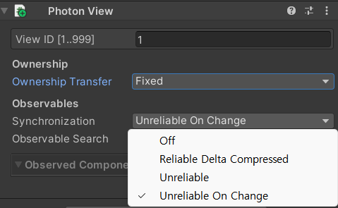 ○ Observed Components : PhotonView 컴포넌트가 관찰해 데이터를 송수신할 대상을 등록하는 속성