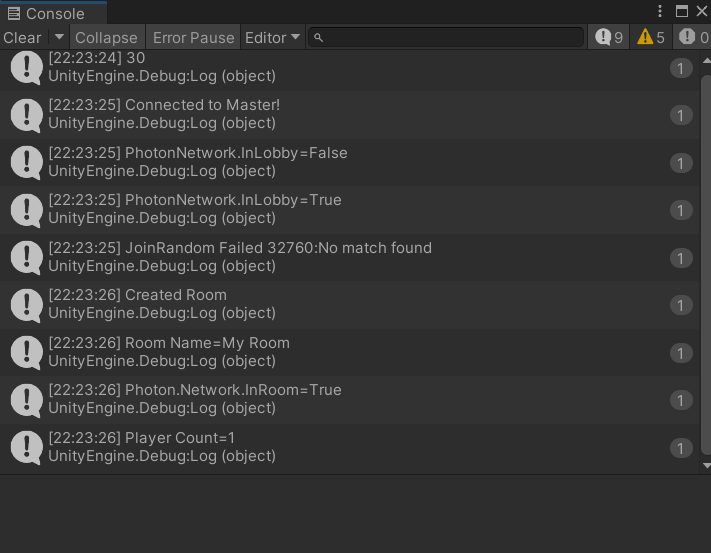 Debug.Log("Created Room");