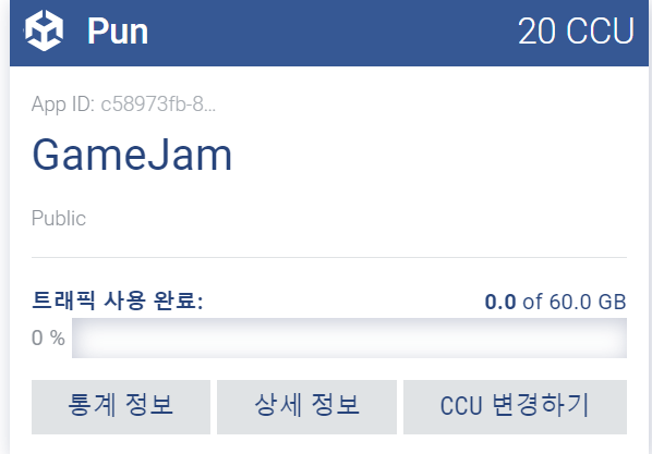 3. 생성 완료, App ID : Pun 설정 시 사용할 어플리케이션 ID
